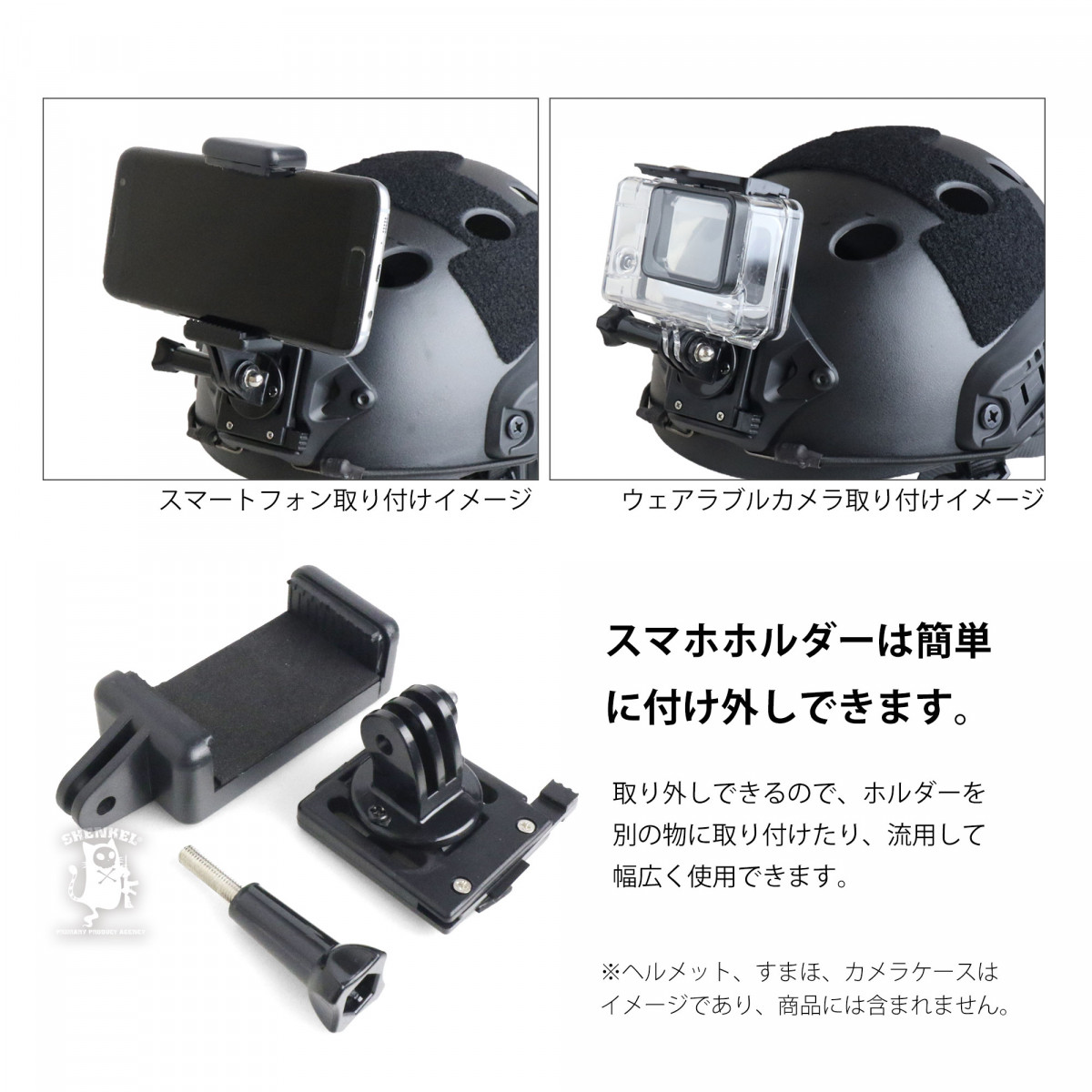 FASTヘルメットなど、NVGシュラウドのあるヘルメットにGo Proなどのウェアラブルカメラや、スマートフォンを取り付けることが可能になります。