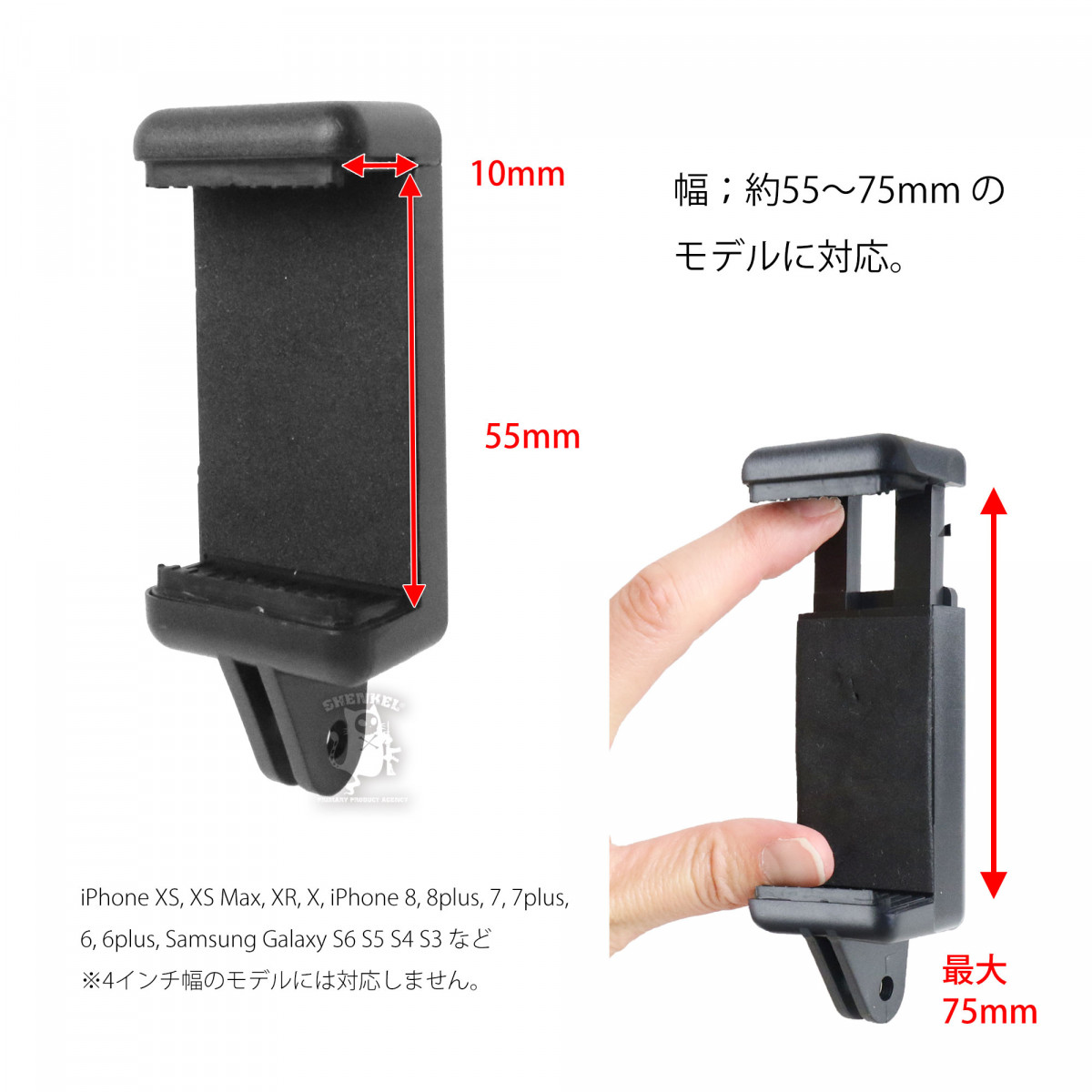 【スマホホルダー】幅;約56〜80mm のモデルに対応。(iPhone XS, XS Max, XR, X, iPhone 8, 8plus, 7, 7plus, 6, 6plus, Samsung Galaxy S6 S5 S4 S3 など)※4インチ幅のモデルには対応しません。