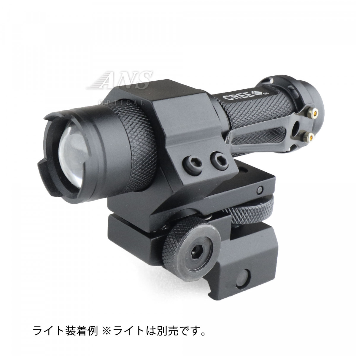 ■サイズ(約):L55mm×W50mm×H68mm ■対応チューブ径:1インチ(25.4mm) ■対応レール幅:20mm ■マウント高さ:ハイマウント(リング中心から爪までの高さ約50mm) ■ナット数:ダブルナット ■材質:軽量アルミ ■重さ(約):126g
