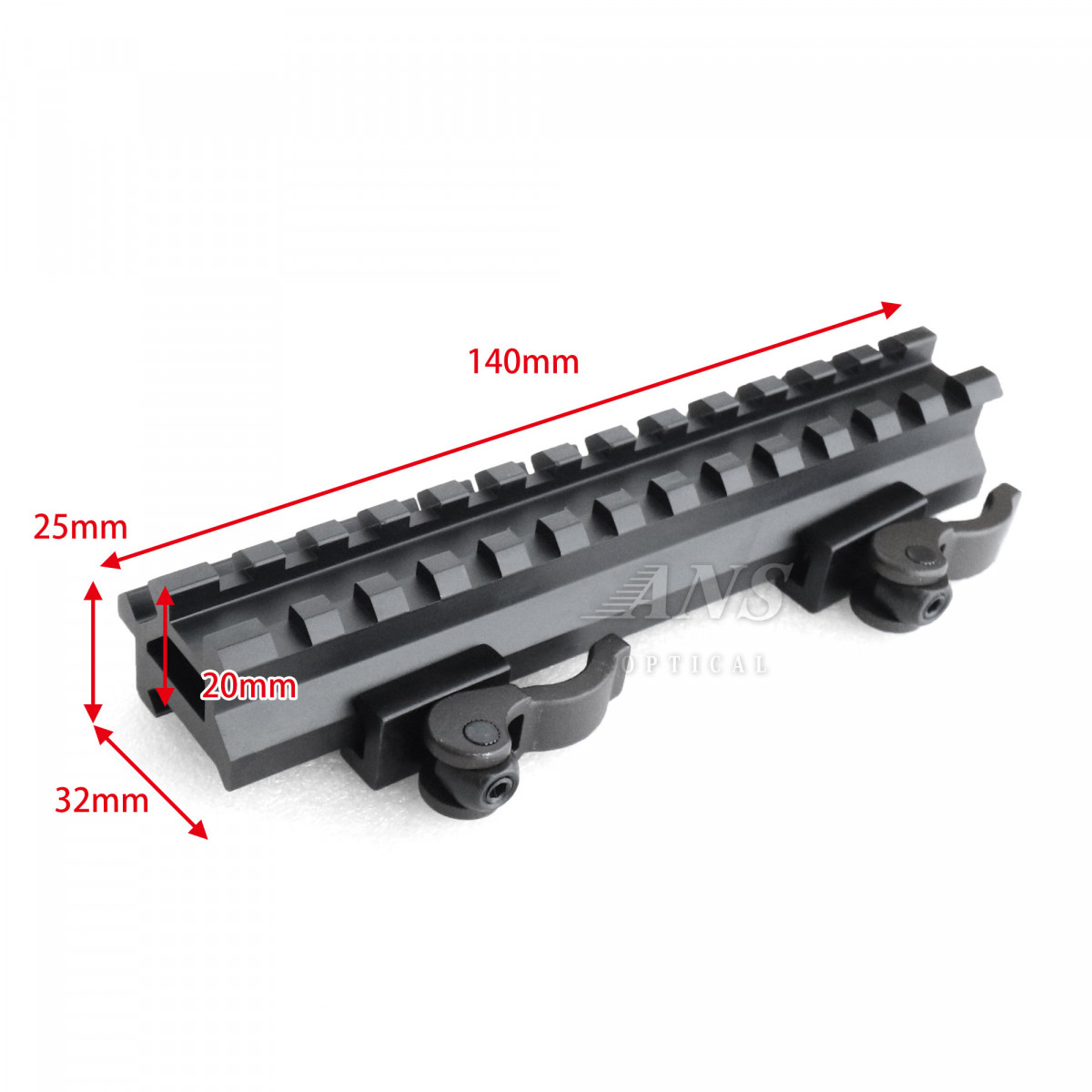 ■サイズ(約):L140mm×H20mm ■対応レール幅:20mm ■材質:軽量アルミ ■重さ(約):167g ■マウント種類:QDマウント