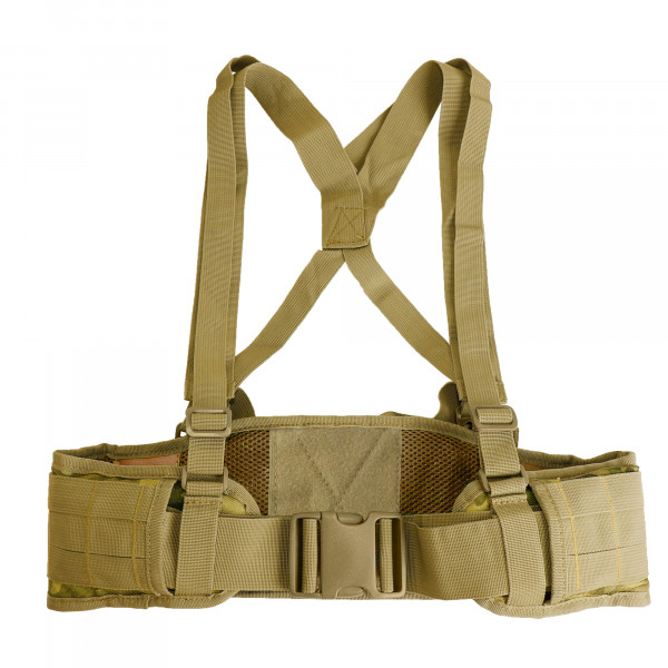 3段のMOLLEが配置されたサスペンダー付きタクティカルベルトです。